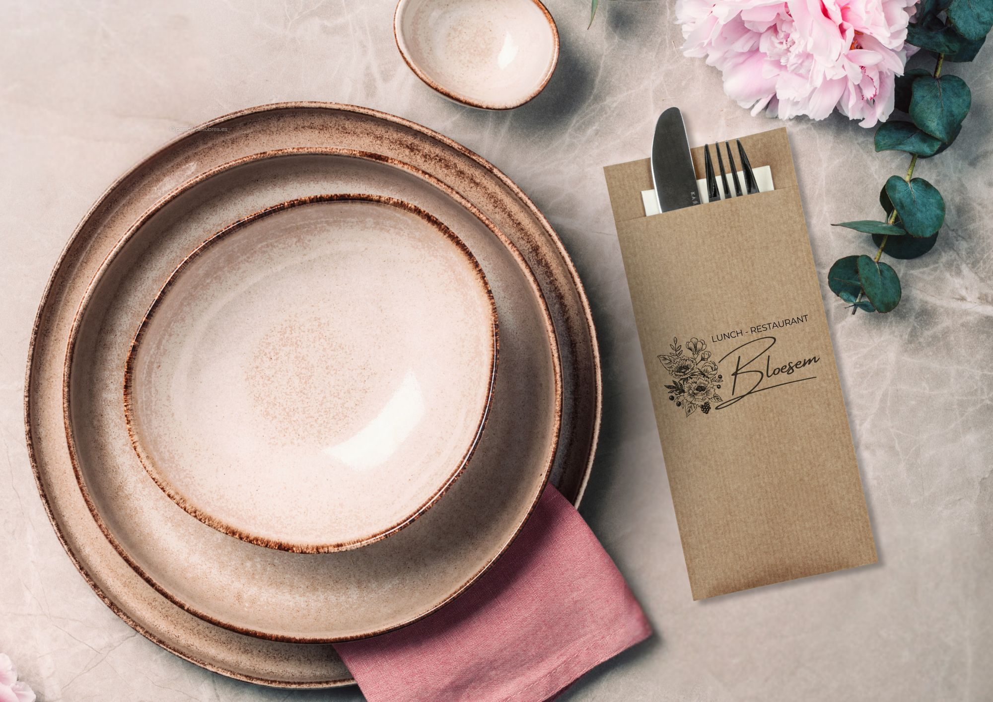 Las bolsas para cubiertos se entregan con servilleta de papel incluída (disponible en colores diferentes). ¡Únicamente, necesita añadir los cubiertos! Están disponibles en papel resistente, blanco, marrón o negro. Las bolsas de cubiertos blancas, se pueden pedir con o sin muesca para cubiertos. Puede imprimir de forma personalizada sus bolsas de cubiertos con un logotipo, diseño o mensaje personalizado (impresión "sin sangrado"). Personalice sus bolsas de cubiertos aquí en Paisdelossobres.es. Con las bolsas para cubiertos impresas a medida, sus clientes recordarán constantemente su empresa y marca. ¡Son ideales como método publicitario extra!